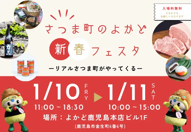 鹿児島県薩摩郡さつま町が、鹿児島市で特産品の体験イベントを開催する「さつま町のよかど新春フェスタ」を1月10日と11日の二日間、よかど鹿児島本店ビル1Fにて実施します。このイベントは、特産品や観光の魅力を広く伝えるため、地域おこし協力隊の主導によって企画されました。