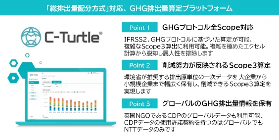 特に、C-Turtleはサプライヤーからのデータを統合し、Scope3のGHG排出量を算定するための革新的なアプローチを採用しています。この方式は、単に企業の活動量と市場平均を元に計算するのではなく、実際の排出努力を反映することを可能にします。
