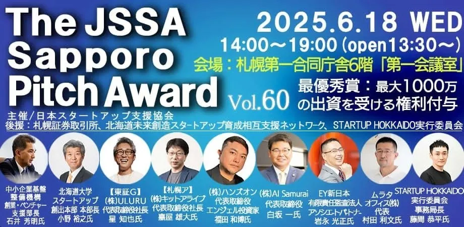 札幌でビジネスチャンスを拡げる『THE JSSA Sapporo Pitch & Booth Vol.60』