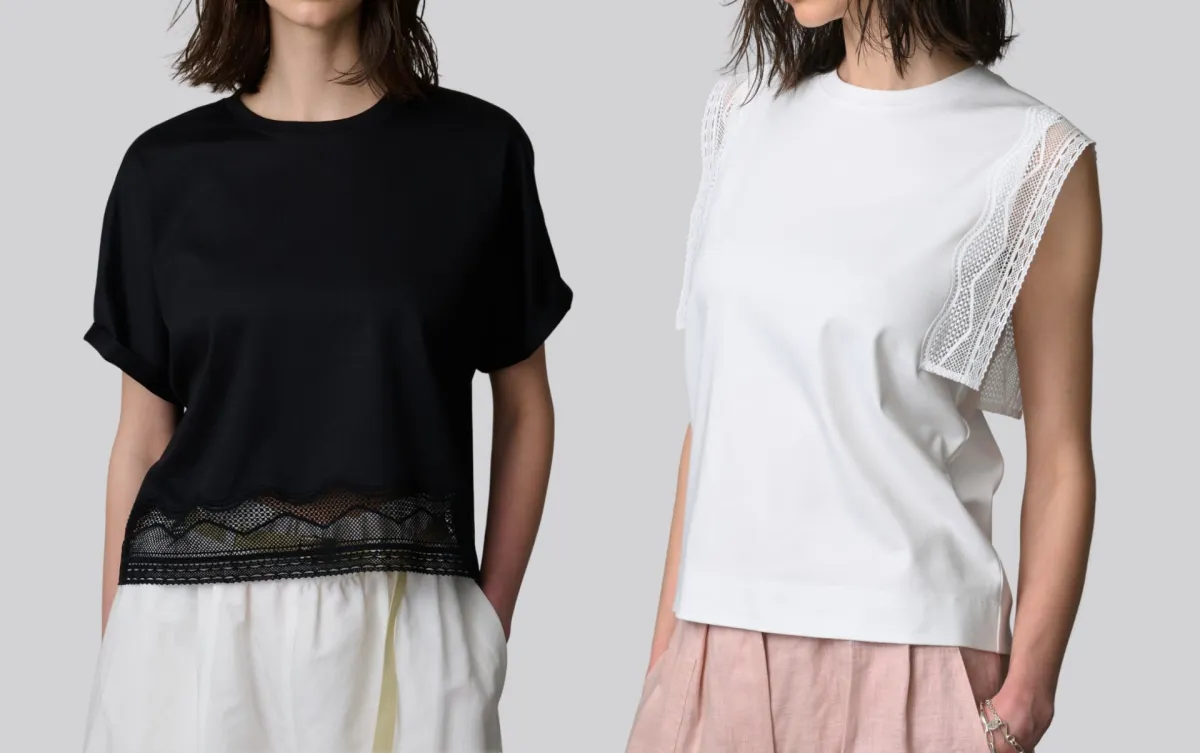この新しいシリーズには、デザインの工夫や高い品質が求められます。特に、インコンバージョンレースデザインヘムカットソーとスリーブカットソーは、上質なスムース素材を使用し、ミニマルなスタイルでありながら華やかな印象を与える商品です。