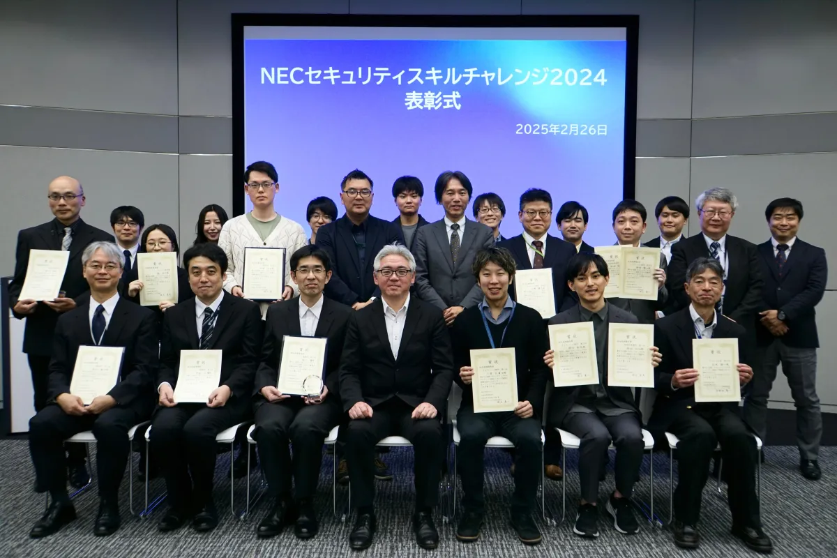 NECは毎年各グループ社員を対象に、CTF(Capture the Flag)形式のオンラインサイバーセキュリティコンテスト「NECセキュリティスキルチャレンジ2024」を開催し、表彰式を2025年2月26日に行いました。このコンテストは、約10年前から続く取り組みであり、社員のセキュリティ人材の発掘と育成を目指しています。