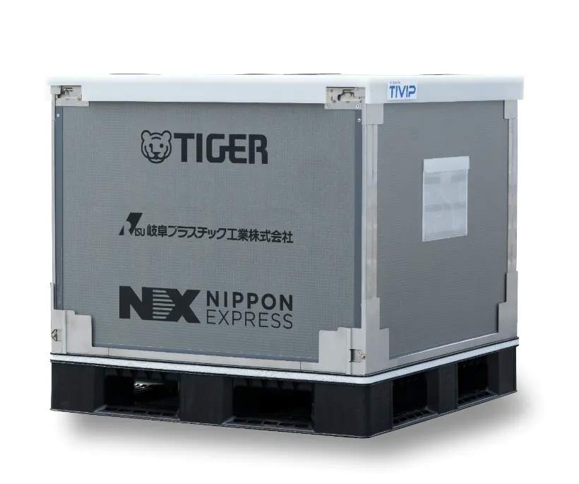 従来の冷凍・冷蔵輸送では蓄冷材や蓄熱材の使用が求められていましたが、今回の「プロテクトBOXサーマル」では、それらを不要にしています。記者が注目したのは、タイガー魔法瓶が開発したステンレス密封真空断熱パネル(TIVIP)です。このパネルは、内部を真空にすることで熱伝導を低下させ、高い断熱性能を持っています。