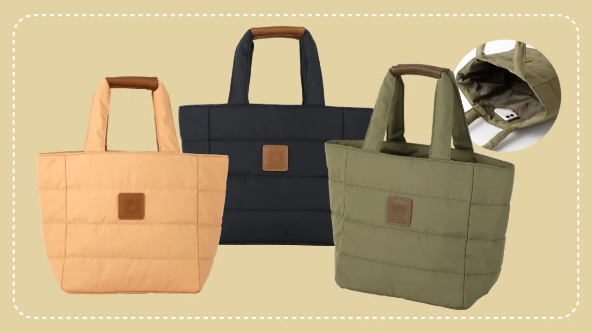 キルティングトートが登場しました。このバッグは、軽量で持ち運びやすく、秋冬の装いにもぴったりなデザインです。色合いもカーキ、マスタード、ブラックの三色展開で、どの色を選んでもスタイリッシュ。
