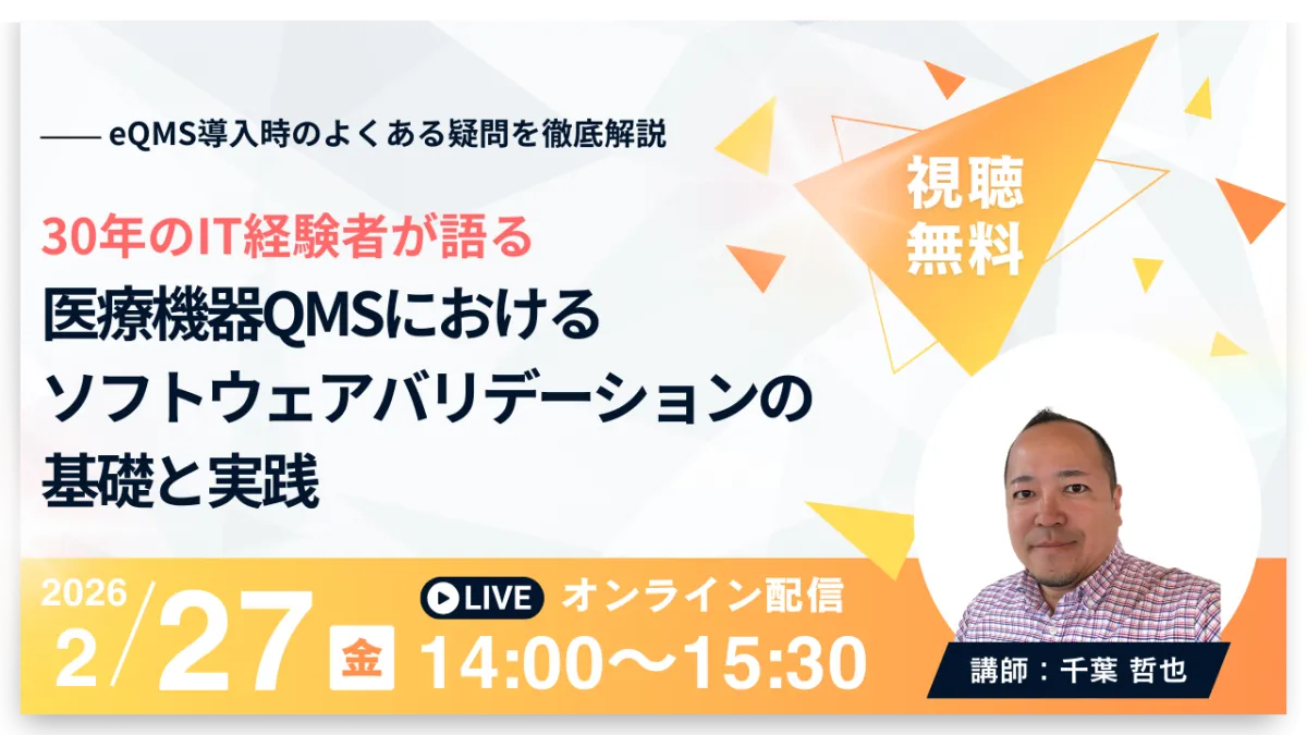 株式会社Berryが主催する医療機器QMSにおけるソフトウェアバリデーションに関する無料オンラインセミナーが2026年2月27日(金)に開催されます。このセミナーは、医療機器業界におけるデジタル化の推進を目指した実践的な知識を提供することを目的としています。