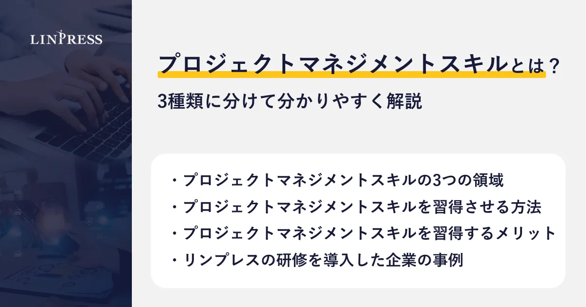 プロジェクトマネジメントスキルは、DXの実現に欠かせない要素です。これらのスキルを理解し、育成することで、企業はより円滑にプロジェクトを進められるようになります。今必要とされている人材の育成を考えている企業や担当者には、リンプレスの研修プログラムが強力なサポートを提供しています。ぜひ、DX推進に向けた教育の一環として、検討してみてはいかがでしょうか。
