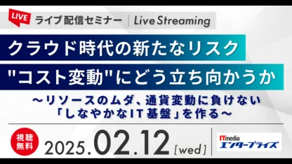 2025年2月12日、水曜日の12:55から、株式会社DELTAの代表取締役である丹哲郎氏がITmediaエンタープライズのライブ配信セミナーに登壇します。このイベントでは、IT部門のリーダー層を対象に、クラウドコストの最適化が企業経営においてなぜ重要なのかを深く掘り下げていきます。