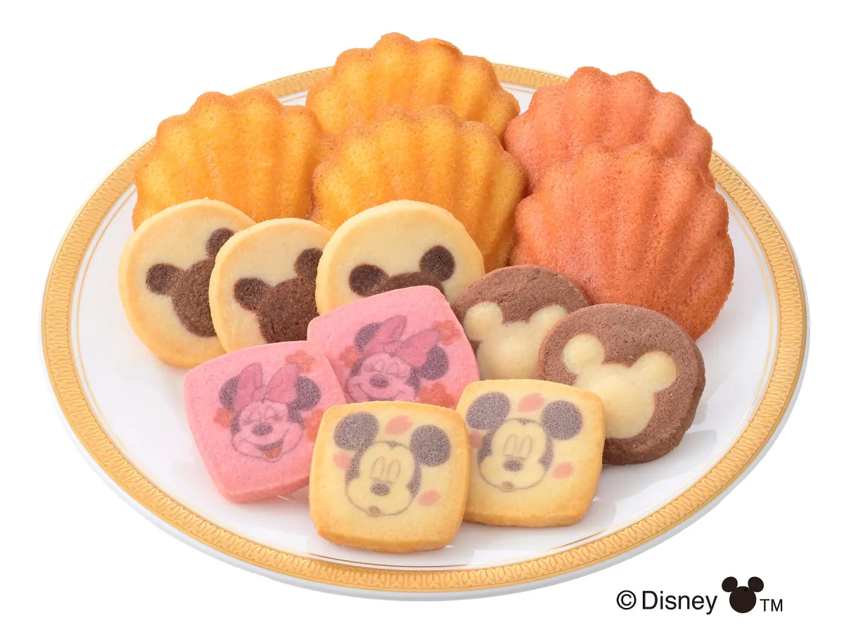 新春スイーツバッグは14個入りで、内容はバターマドレーヌ3個、いちごマドレーヌ2個、クッキー(ミッキー/黒)3個、クッキー(ミッキー/白)2個、クッキー(ホワイトチョコ)2個、さらにクッキー(いちご)2個が含まれています。特に注目したいのは、ミッキーアイコン柄のクッキーや、お正月限定デザインでプリントされたクッキー。しっとりとしたマドレーヌは、まさにお正月のお茶うけにぴったりです。