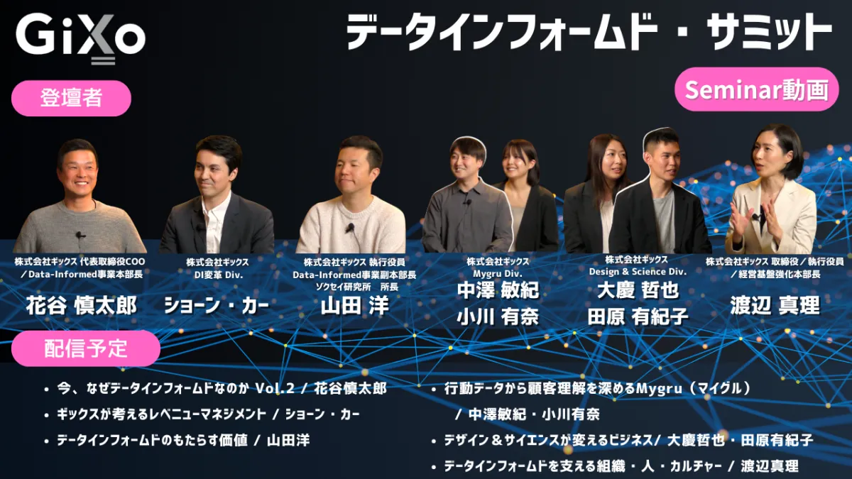 株式会社ギックスは、2025年4月22日開催予定の「GiXoデータインフォームド・サミット2025」に先立ち、企業やビジネスにおけるデータの重要性を十分に理解してもらうためのセミナー動画を6本公開しました。この動画シリーズは、データインフォームドというコンセプトを広め、視聴者が顧客理解を深めるために役立つ内容となっています。