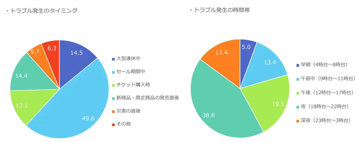 調査によると、ネットショッピングの利用者の約半数が、利用するたびに1回以上のトラブルを経験していることが分かりました。最も多くトラブルが発生するのは、セール期間中で、特に18時から22時の時間帯に集中しています。トラブル発生時、58.2%の利用者は問い合わせを行わず、静かにサービスを離脱してしまうことが判明しました。この現象を「サイレントカスタマー」と呼びます。