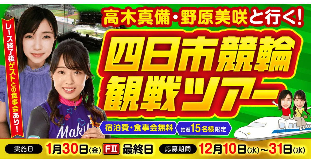 合同会社DMM.comが提供する競輪投票サイト「DMM競輪」は、2026年1月に開催される「四日市競輪現地観戦イベント」を発表しました。このイベントでは元競輪選手の高木真備さんと野原美咲さんをゲストに迎え、参加者は彼らと一緒に競輪観戦を楽しむことができます。