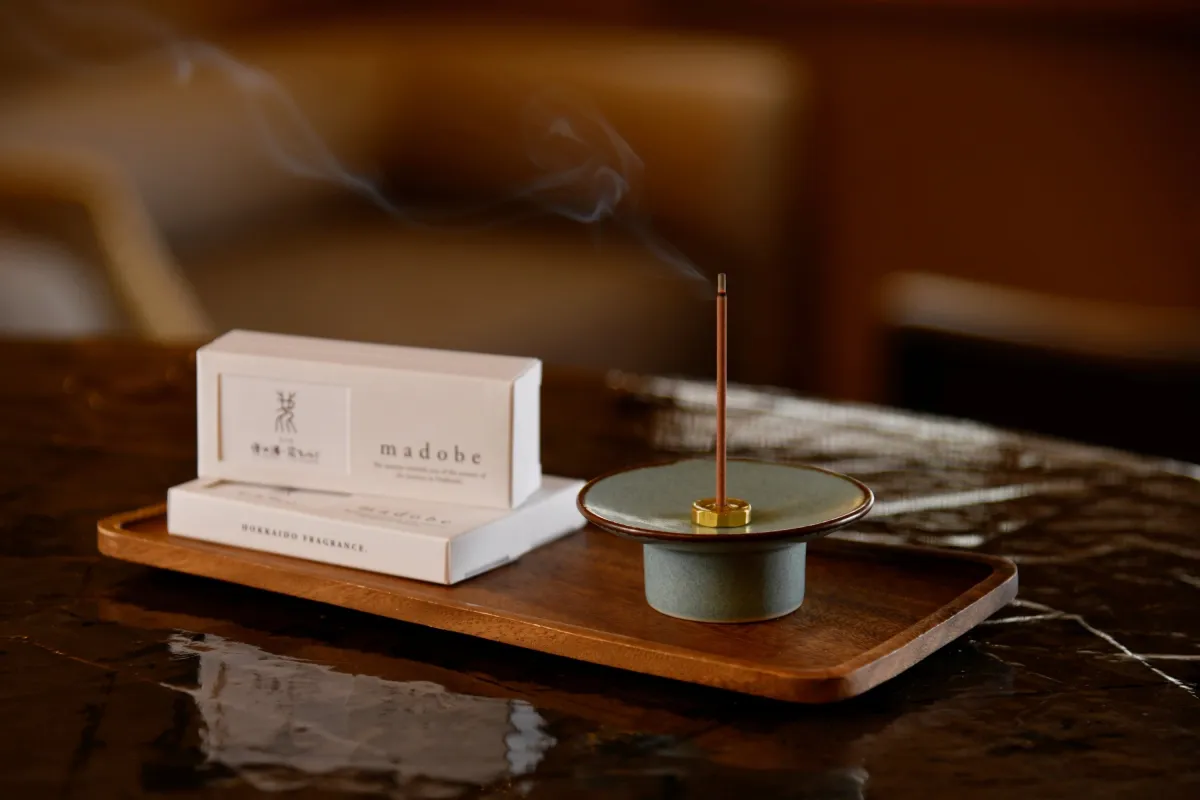 定山渓 鹿の湯は、香りに対しても細やかな配慮があります。ロビーでは、到着時には凛とした香り、出発時には清々しい香りが焚かれ、宿泊者をおもてなししています。旅行の思い出をもう一度自宅でも楽しんでもらえるように、お香を通じてその体験を提供します。