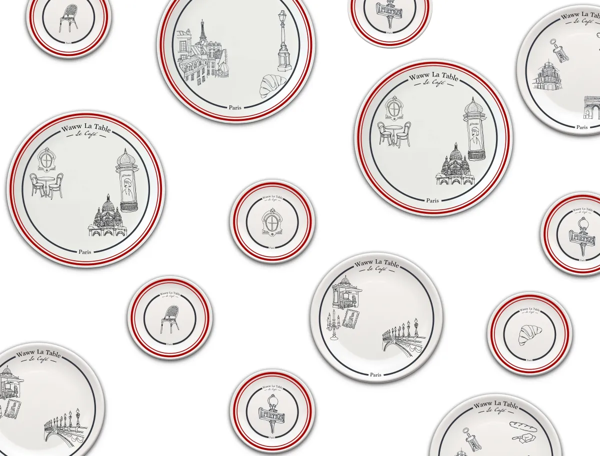 日本でのローンチ記念イベントでは、特に人気の高い「Paris Paris」シリーズや「Gigiシリーズ」の商品が注目されています。これらはボン・マルシェや有名レストランGigiとのコラボから生まれたもので、一般ユーザー向けにも販売されます。たとえば、パリ・パリシリーズのプレートは、12cmから27cmサイズまで用意され、価格は4,400円から7,700円(税込)と手頃です。