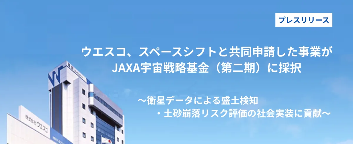 株式会社ウエスコ(岡山県岡山市)は、国立研究開発法人宇宙航空研究開発機構(JAXA)が公募する宇宙戦略基金(第二期)において、技術開発テーマ「衛星データ利用システム実装加速化事業」に採択されたことを発表しました。本事業は、ウエスコが代表機関となり、株式会社スペースシフト(本社:東京都千代田区)を連携機関として共同で申請したもので、テーマは「マルチモーダルAIによる違法・不正盛土検知と土砂崩落リスク評価」です。