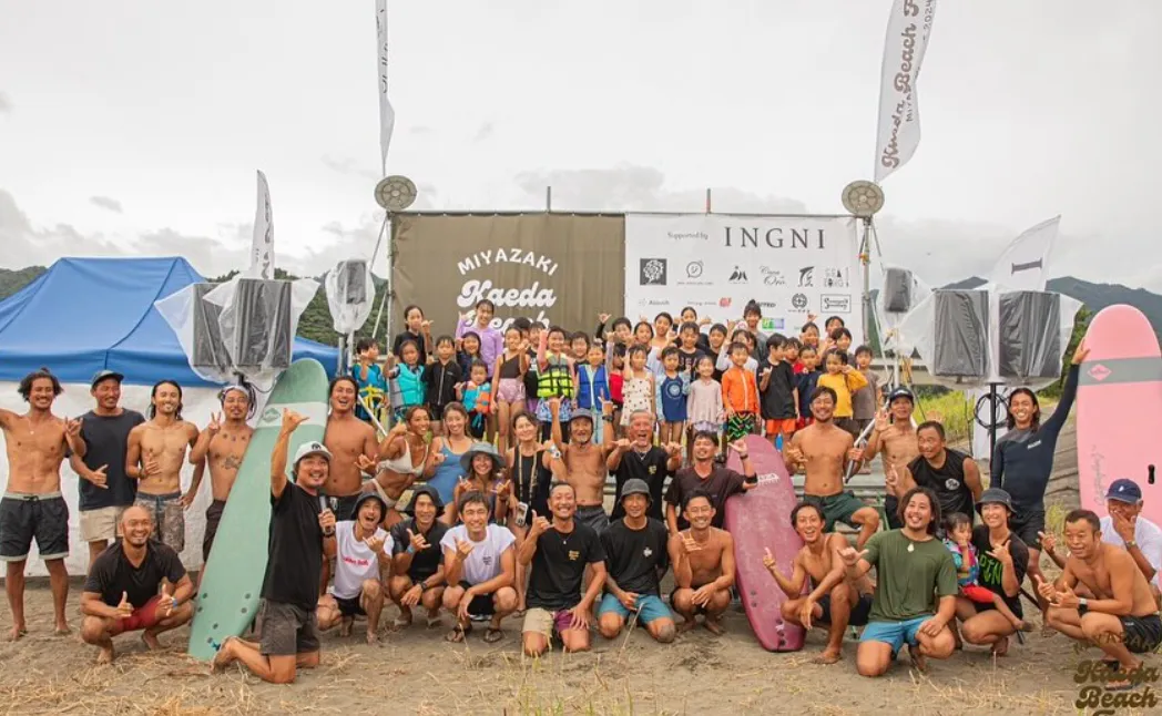 「KAEDA BEACH FES.」は、サーフィンコンテストだけでなく、音楽やフィッシング、さらには地元の食文化を融合させた多彩なプログラムが特徴です。特に、未来を担う子供たちに宮崎の海の素晴らしさを伝えることを目指し、子供向けのサーフィン体験や宝探し、ビーチクリーン活動も実施されました。