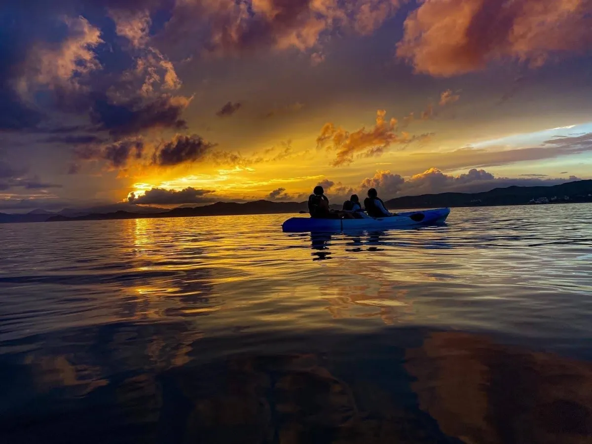 英虞湾でのサンセットカヤックツアーです。日本の夕日百選にも選ばれたこのエリアでは、複雑な海岸線と大小の島々が織り成す美しい夕陽が見所。特に10月末まで開催されているツアーは、カヤックに乗り込んで海面に映るオレンジ色の夕陽を特別な体験として楽しむことができます。波の音と海鳥の鳴き声に包まれながら、心安らぐひとときをお過ごしください。