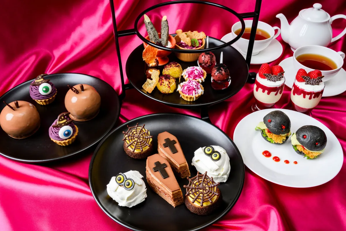1階のレストラン「DINING TSUZUMI」で提供されるこのアフタヌーンティーは、ホテルのパティシエ山岸が手がけた季節の素材を生かしたスイーツが自慢です。テーマは“魔女のティーパーティー”。モンスターや魔女をモチーフにした遊び心満載のスイーツが揃い、味わいとともに視覚でも楽しめる仕上がりになっています。