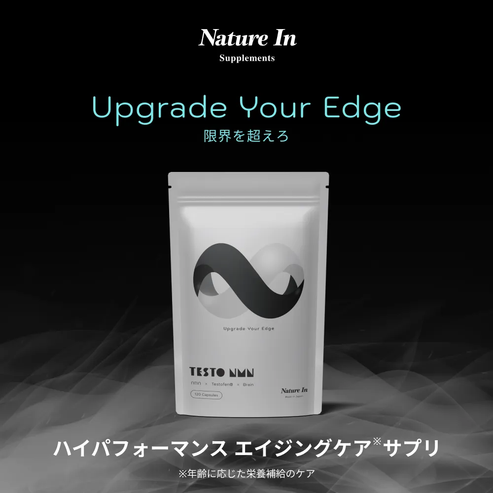 男性たちは、どの年代においても「日々のパフォーマンス」を維持することが共通の課題となっています。「Nature In」はこのニーズに応えるため、手軽に摂取可能でスタイリッシュなサプリを目指し「TESTO NMN」を開発しました。