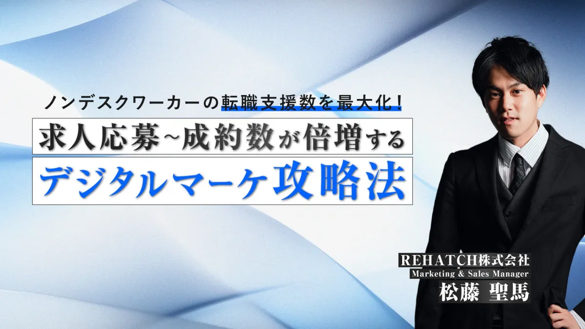 そのため、REHATCH株式会社はオンラインセミナー「ノンデスクワーカーの転職支援数を最大化! 求人応募〜成約数が倍増するデジタルマーケ施策攻略法」を実施します。このセミナーでは、最新のデジタルマーケティング戦略を基に、ノンデスクワーカーに特化した具体的な施策を紹介します。