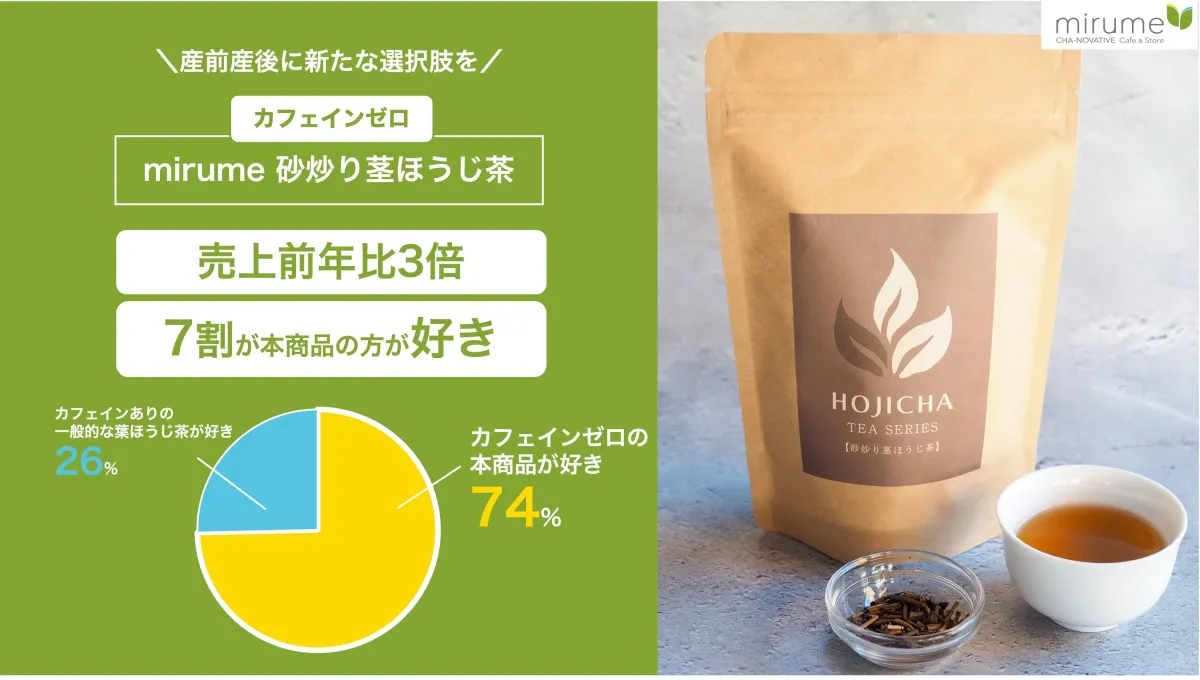 株式会社T-BOXが展開する日本茶専門店「mirume」の「砂炒り茎ほうじ茶」が、妊娠中や産後の方々に新たな選択肢を提供し、大きな注目を浴びています。この商品は、日本茶の伝統を受け継ぎながらも、カフェインゼロを実現し、さらにはおいしさまで両立させるという画期的な製法が特徴です。
