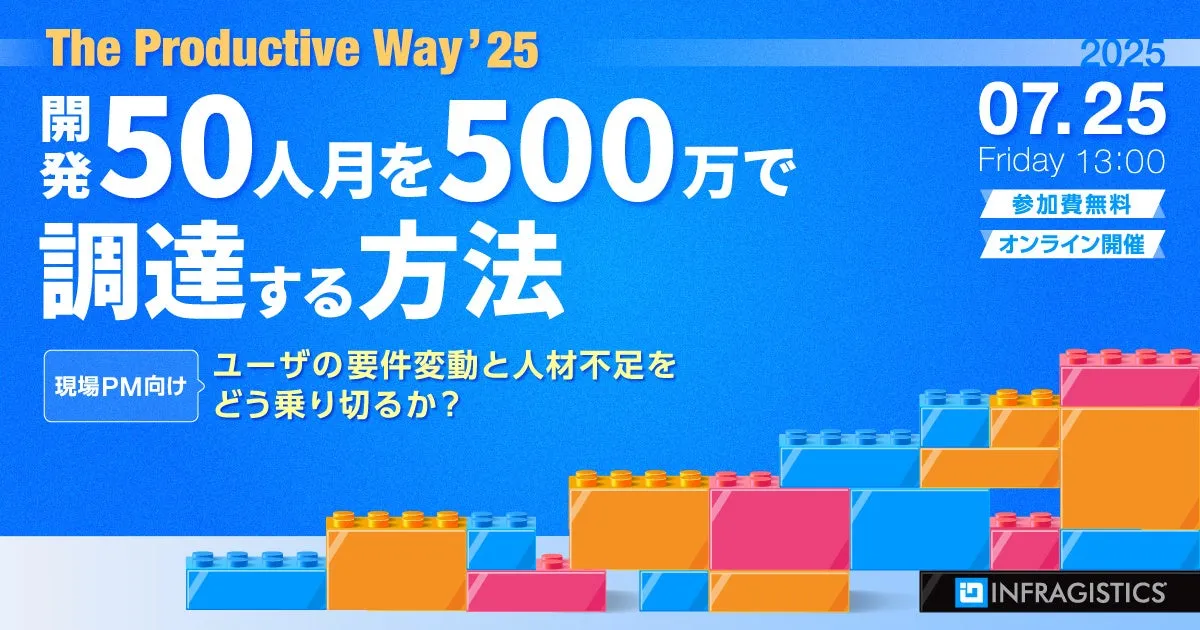 インフラジスティックス・ジャパン株式会社は、システム開発プロジェクトマネージャーやプロダクトマネージャーを対象に特別オンラインイベント「The Productive Way'25」を開催しました。このイベントは350名以上の参加者が集まり、2025年7月25日に行われ、参加者にとって非常に有意義な内容が提供されました。