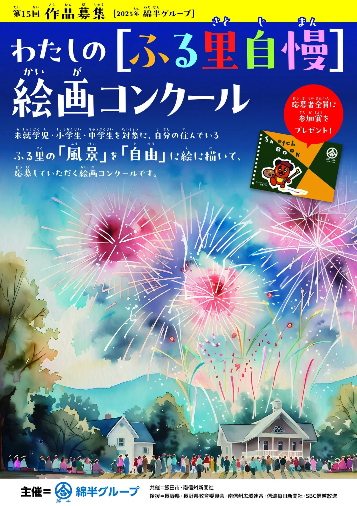 綿半ホールディングス株式会社は、秋が深まる中、飯田市にて「わたしの『ふる里自慢』絵画コンクール」の第15回目を開催します。このコンクールは、未就学児から中学生を対象に、自分たちの住む地域の「お気に入りの風景」を描くことをテーマにしたイベントです。