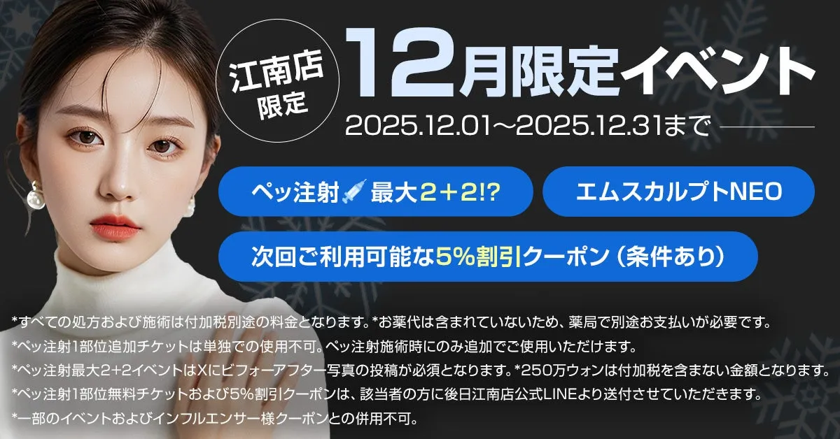 韓国・ソウルの江南エリアに位置するPLAN;S CLINICは、12月の特別イベントを開催します。このクリニックは、ダイエットやリフティングに特化した施術を提供しており、初めての方でも体験がしやすい価格設定が魅力です。