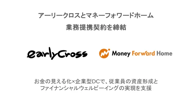 株式会社アーリークロス(福岡県福岡市)とマネーフォワードホーム株式会社(東京都港区)は、両社の業務提携契約を正式に締結したことを発表しました。本提携により、アーリークロスの企業型確定拠出年金(企業型DC)の導入支援と、マネーフォワードホームが提供する『マネーフォワード ME』による資産の見える化サービスが融合し、働く人々の資産形成を促進することを目指しています。