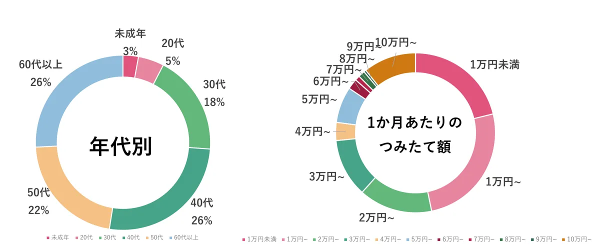 同社の直接販売によるお客様数は約60,000人に上り、その中でも40代以下の資産形成層が全体の約50%を占めています。また、投資家の約70%が毎月1万から3万円のつみたて投資を実施しています。