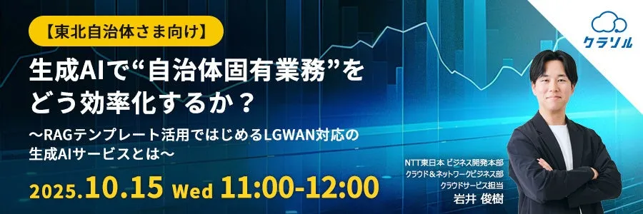 具体的なユースケースを交えながら、窓口対応や内部事務の負担を軽減し、職員が日常的に活用できる方法を解説します。また、現地での伴走支援を行うNTT東日本のサポート体制についても詳しくご紹介する予定です。特に、東北地方の自治体に特化して開催されるこのウェビナーは、実情に即した活用イメージを持っていただく良い機会となるでしょう。