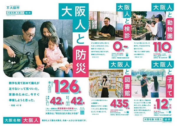 特に、「数字でみる大阪市」というテーマのもと、健康・医療・福祉、子育て支援、防災に関連するデータを視覚的に示し、インパクトのある広告を展開します。地域の実情を具体化することで市民の納得度を高めています。