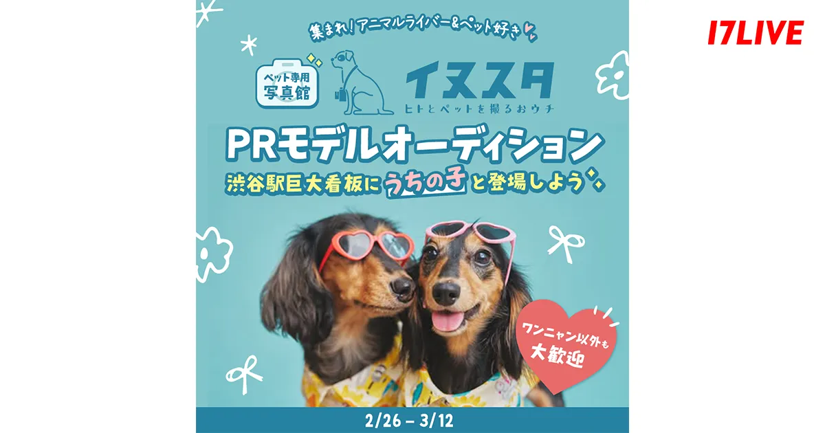2025年2月26日(水)から、17LIVE株式会社が新たなイベント「ペット専用写真館『イヌスタ』 PRモデルオーディション」の開催を発表しました。このオーディションは、ペットを愛するすべてのライバーにとって夢の舞台となることを目的としています。
