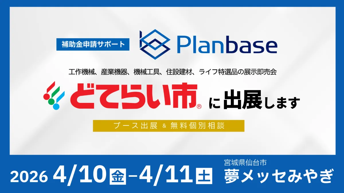2026年4月、宮城県仙台市で行われる「2026東北どてらい市」には、来場企業向けの役立つ情報源として、株式会社プランベースが出展します。この展示即売会は、工作機械や産業機器の新たな導入を考える企業にとって、適切な補助金を活用する良い機会です。