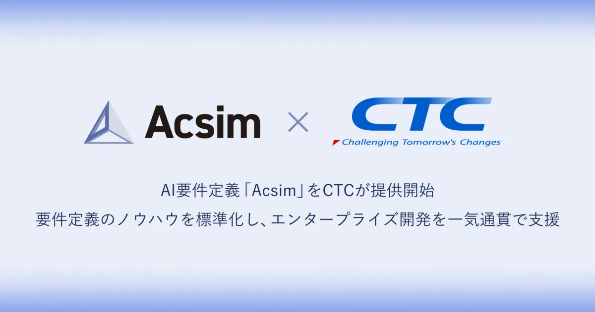 株式会社ROUTE06(以下ROUTE06)と伊藤忠テクノソリューションズ株式会社(以下CTC)が、エンタープライズ企業のシステム開発を一層効率化するため、AI要件定義ツール「Acsim」を基盤としたパートナー契約を締結しました。この契約により、CTCが「Acsim」の販売を開始し、導入や運用定着の支援が行われます。