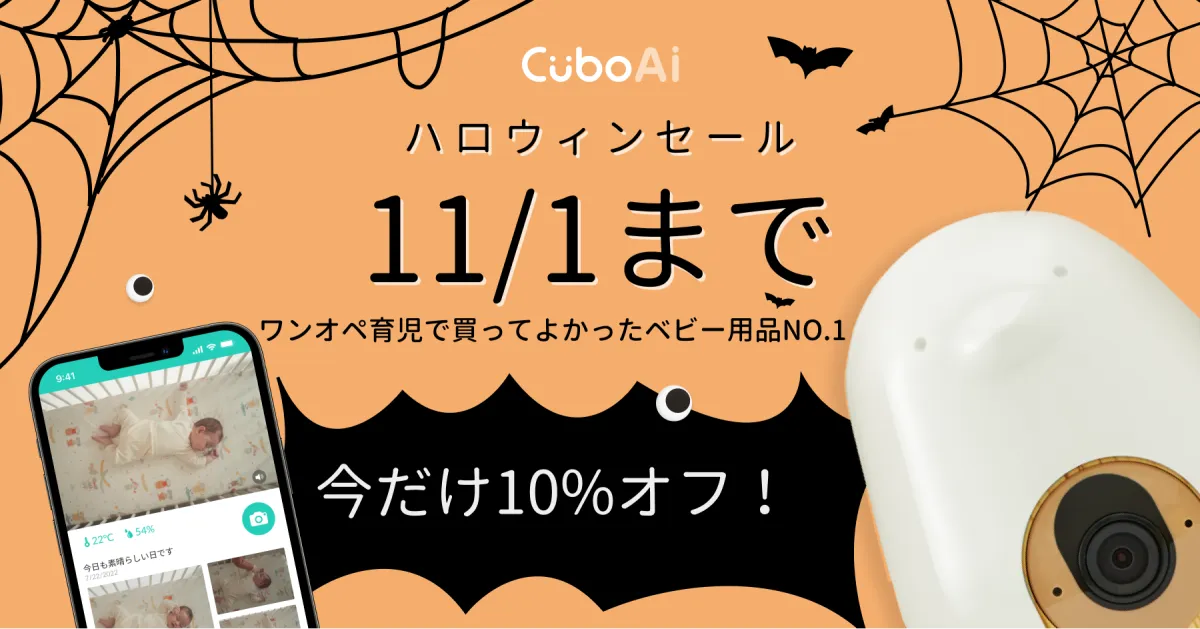 赤ちゃんの安全を見守るCuboAiスマートベビーモニターが、今年のハロウィンを特別に彩るセールを実施中です。期間は2022年10月26日から11月1日までの約一週間で、この期間中は通常価格から10%割引の特別価格で購入可能です。セール対象となるのは、CuboAi スマートベビーモニターと赤ちゃんねんね見守りセットです。