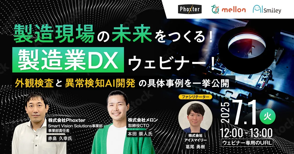 2025年7月1日(火)12時から、製造業のデジタルトランスフォーメーション(DX)をテーマにしたウェビナーが開催されます。このイベントは株式会社アイスマイリー、東京都渋谷区が主催し、製造業におけるAI技術の活用方法について専門的な見地からの解説が行われます。