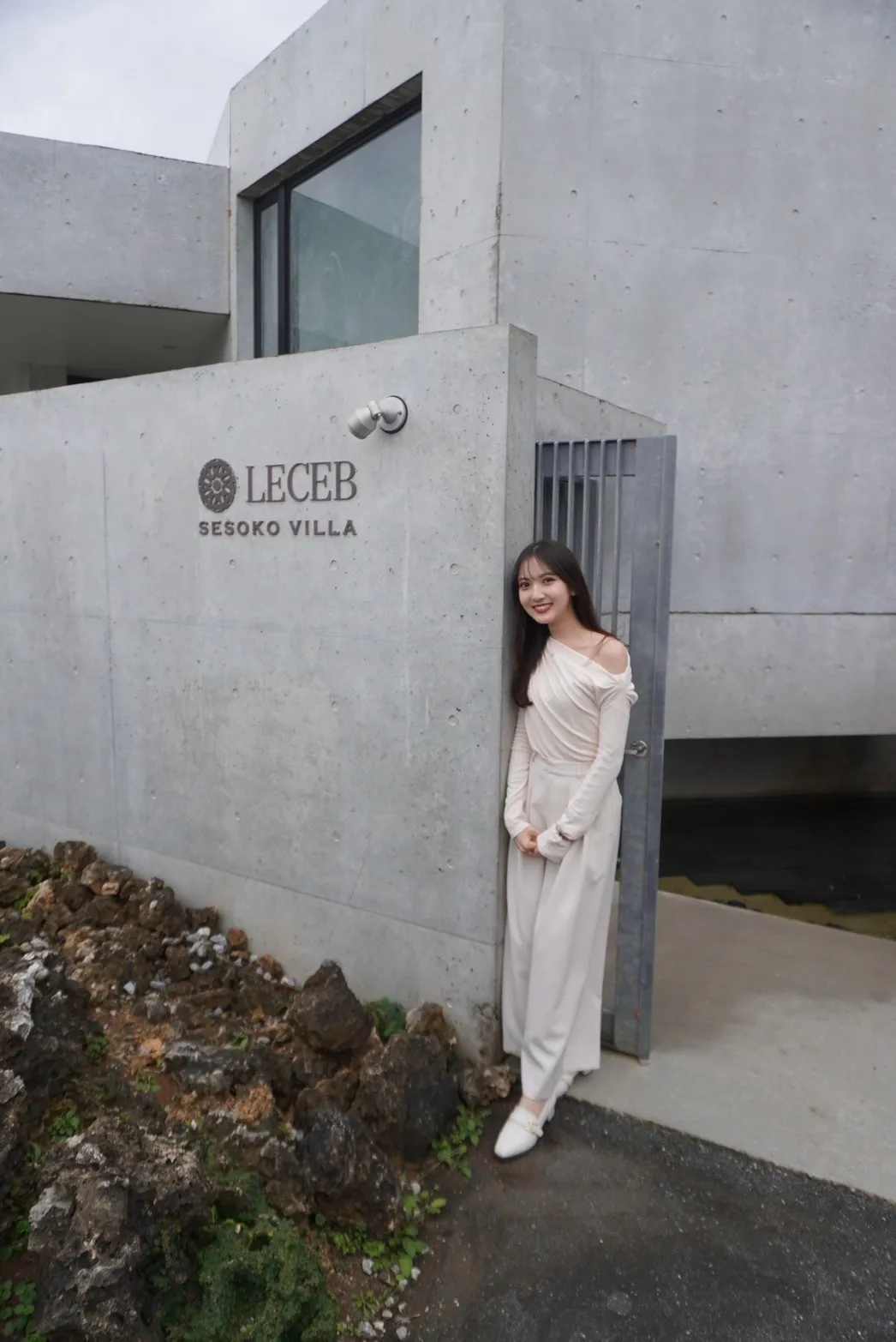 宮崎葉苗さんは、卒業旅行で沖縄を訪れて以来、約1年ぶりの再訪。この度の宿泊先である『LECEB SESOKO VILLA Hills suite』は、彼女に新たな体験をもたらしました。初めての宿泊に胸を躍らせながら、暖かく迎え入れてくれた総支配人の石切山さんとの出会いが印象的だったそうです。