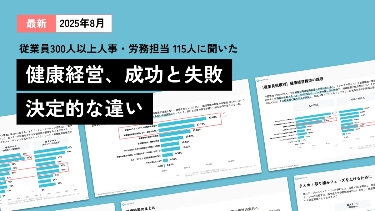 最近実施された「健康経営の課題と対策 実態調査レポート2025」において、メディフォン株式会社が提供するクラウド健康管理システム『mediment』を利用した調査結果が公開されました。この調査は、従業員300名以上の企業に向けて行われ、115名の人事労務担当者からの回答を収集しました。その結果、健康経営に関する多くの重要な課題が浮き彫りとなりました。
