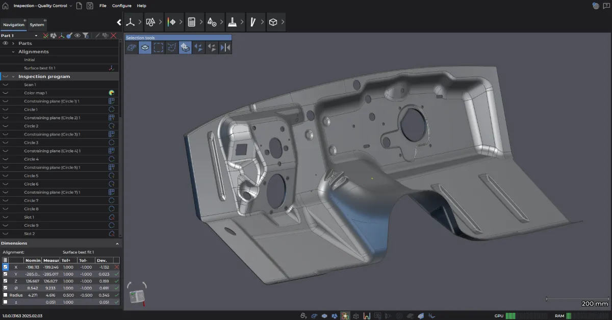 さらに、新しいUI(ユーザーインターフェース)には、取得した計測データの可視化ツールが追加されました。これにより、データ不足による手戻り作業を軽減し、時間を効率的に使うことができます。これまでの製品とは異なり、ハンディタイプのHandySCAN 3D | BLACKシリーズやMetraSCAN BLACK+スキャナーとの組み合わせによって、見事な相乗効果をもたらします。