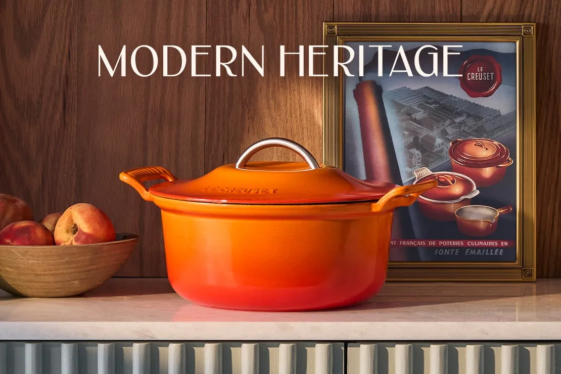 「モダン・ヘリテッジ」は、ル・クルーゼの熱烈な愛好者たちから支持されてきた「ヘリテッジコレクション」を基盤にしながら、現代的なアプローチでデザインされています。このコレクションの目玉は、日常的な使用がしやすくなるよう進化した機能性です。特に、鍋の持ち手が改良され、指がしっかりと入るデザインとなったことで、持ち運びもスムーズです。手になじむステンレス製のハンドルが、全体のスタイルに洗練さを加えています。