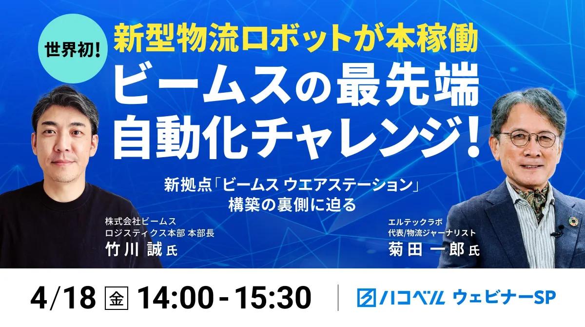 2025年4月18日、東京都中央区に本社を構えるハコベル株式会社が主催するウェビナーが開催されます。このセミナーでは、アパレル業界のリーディングカンパニー、株式会社ビームスホールディングスのロジスティクス本部長である竹川誠氏を迎え、最新の物流技術に関する熱い議論が繰り広げられます。