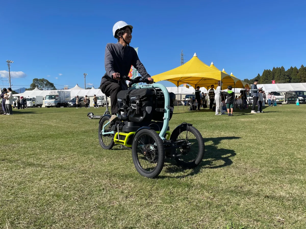 そんな中、特に注目を集めたのが、株式会社SANKYOが出展した電動アシスト三輪カーゴバイク「STREEK」の試乗体験です。この試乗は、一般社団法人大崎町SDGs推進協議会のブースで行われ、特設エリアで多くの来場者が体験しました。