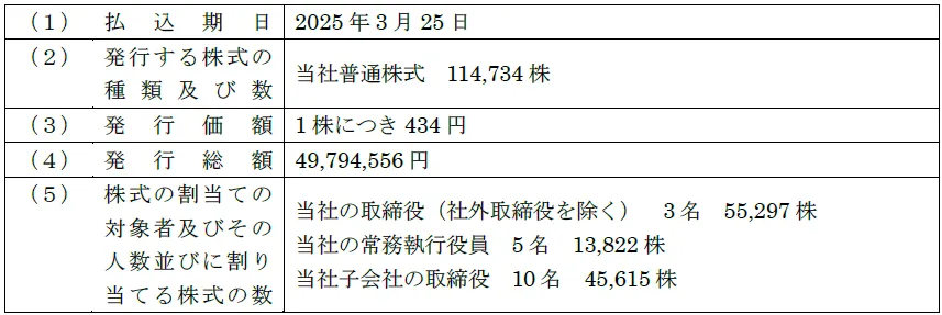 新株式の発行は、アステナホールディングスの成長戦略の一環として位置づけられており、経営資源を最適化し、企業の競争力を高めるための重要な施策です。譲渡制限付のスキームは、従業員に対し長期的な視点からの報酬を提供することで、会社への愛着を促進し、離職率の低減にもつながるでしょう。