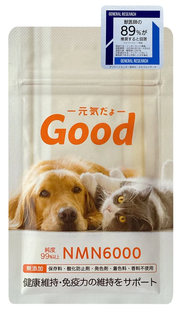 「Good」は、品質と効果にこだわる飼い主にとって魅力的な製品です。NMN(ニコチンアミドモノヌクレオチド)は、細胞のエネルギーを活性化し、老化防止に寄与する成分として注目されています。このサプリが、従来のNMN4500mgから6000mgに増量されたという事実は、さらなる健康維持の助けになることでしょう。