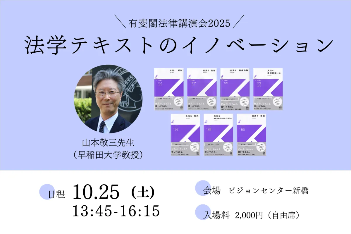 2025年10月25日、東京都千代田区にあるビジョンセンター新橋にて、法律講演会が開催されます。この講演会は、株式会社有斐閣が刊行した「ストゥディア民法シリーズ」の全7巻発売を記念して行われるものです。