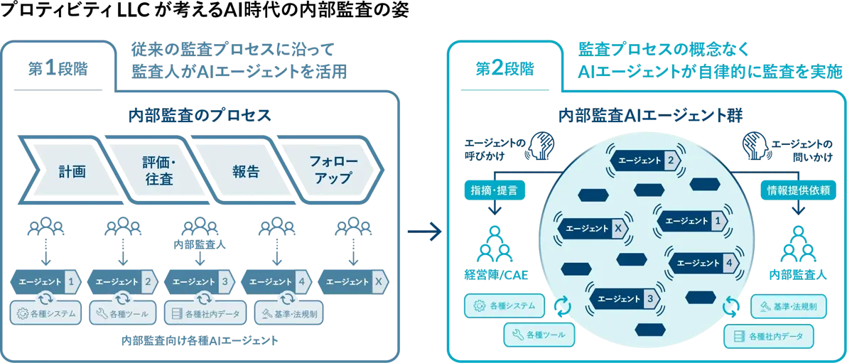 プロティビティは、今後数年で人間とAIが協働する新しい内部監査のモデルを実現することを目指しています。具体的には、以下の三つの重要な変革を期待しています: