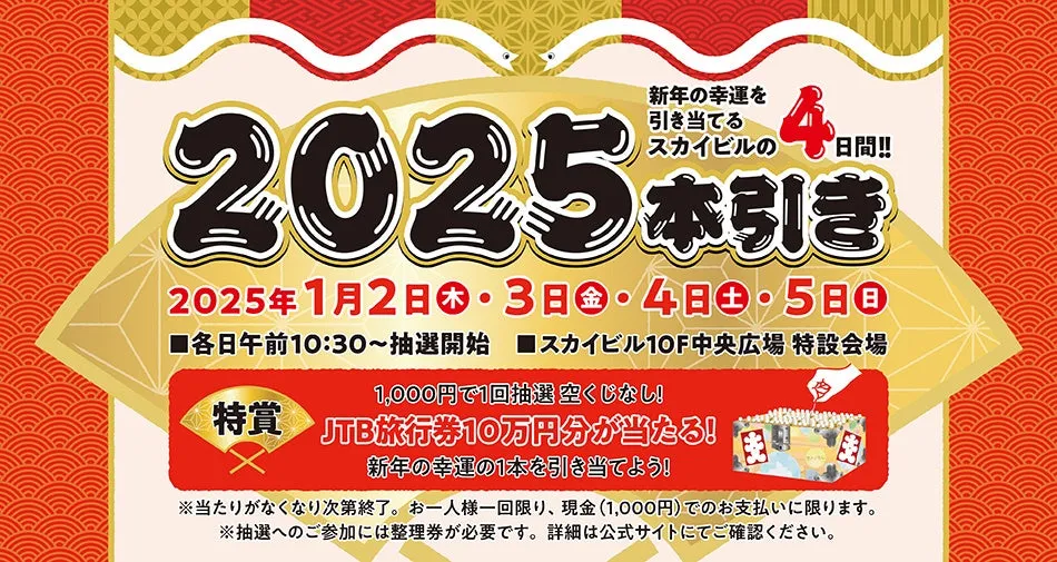 新年を迎え、横浜の名所、スカイビルでは特別なイベントが開催されます。それが「2025本引き」と題されたハズレ無しの新春特別抽選会です。本イベントは、2025年1月2日から1月5日までの4日間、横浜市西区に位置するスカイビル内で行われます。