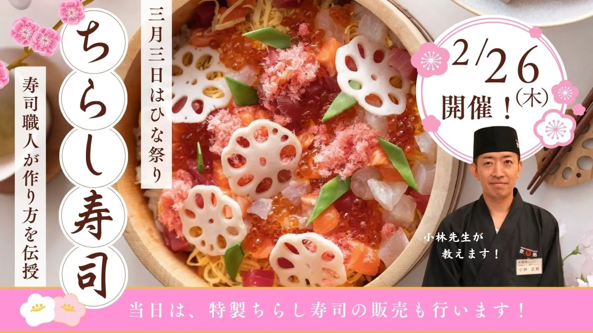 本イベントの開催日は2026年2月26日(木)の15:00~17:00で、場所は新宿センタービルの飲食塾。参加費は3,000円で、お申込みは2026年2月20日迄。持ち物としてはエプロンや汚れても良い服装を用意して、楽しい講義に備えてください。参加できない方のためには、数量限定で特製ちらし寿司も販売され、参加者同様にその味を楽しむことができます。