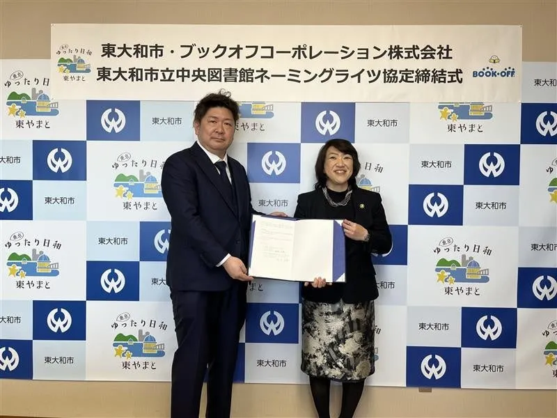 ブックオフコーポレーション株式会社は、2026年2月4日に東京都東大和市と「東大和市立中央図書館」のネーミングライツ協定を締結しました。この協定により、2026年4月1日から2023年3月31日までの5年間、図書館の愛称が「BOOKOFF東大和市中央図書館」となります。
