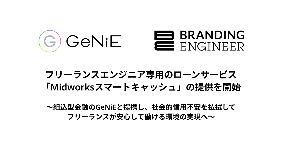 株式会社Branding Engineerは、フリーランスエンジニア専用のローンサービス「Midworksスマートキャッシュ」を開始しました。このサービスは、アコム株式会社の子会社であるGeNiE株式会社との提携によって実現しています。「Midworks」への登録者は、マイページを通じて簡単に申し込みや審査を行うことができます。