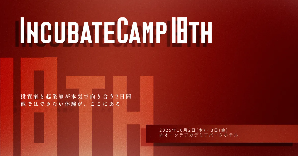 インキュベイトファンド株式会社は、2025年10月2日(木)と3日(金)に、合宿型アクセラレーションプログラム『Incubate Camp 18th』を開催すると発表しました。このイベントは、シードやアーリーステージのスタートアップに特化したプログラムで、新たな事業の加速を目指す起業家たちにとって絶好の機会となります。